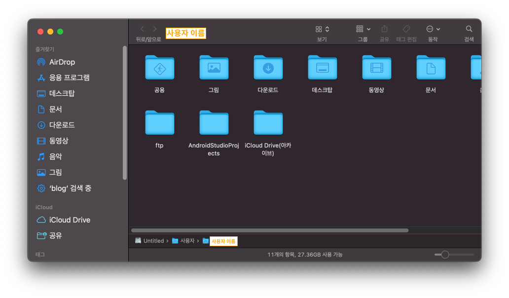finder는 특징이 원하는 폴더 위치로 이동하기 쉽다는 데 있다.
