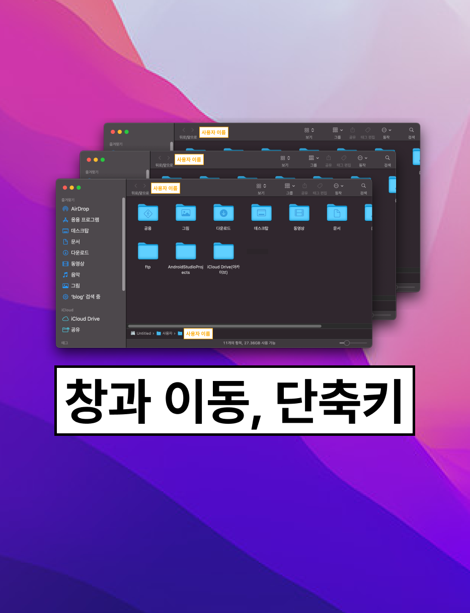 이렇게 오늘은 finder 창, 탭, 이동 단축키에 대해서 알아봤습니다~