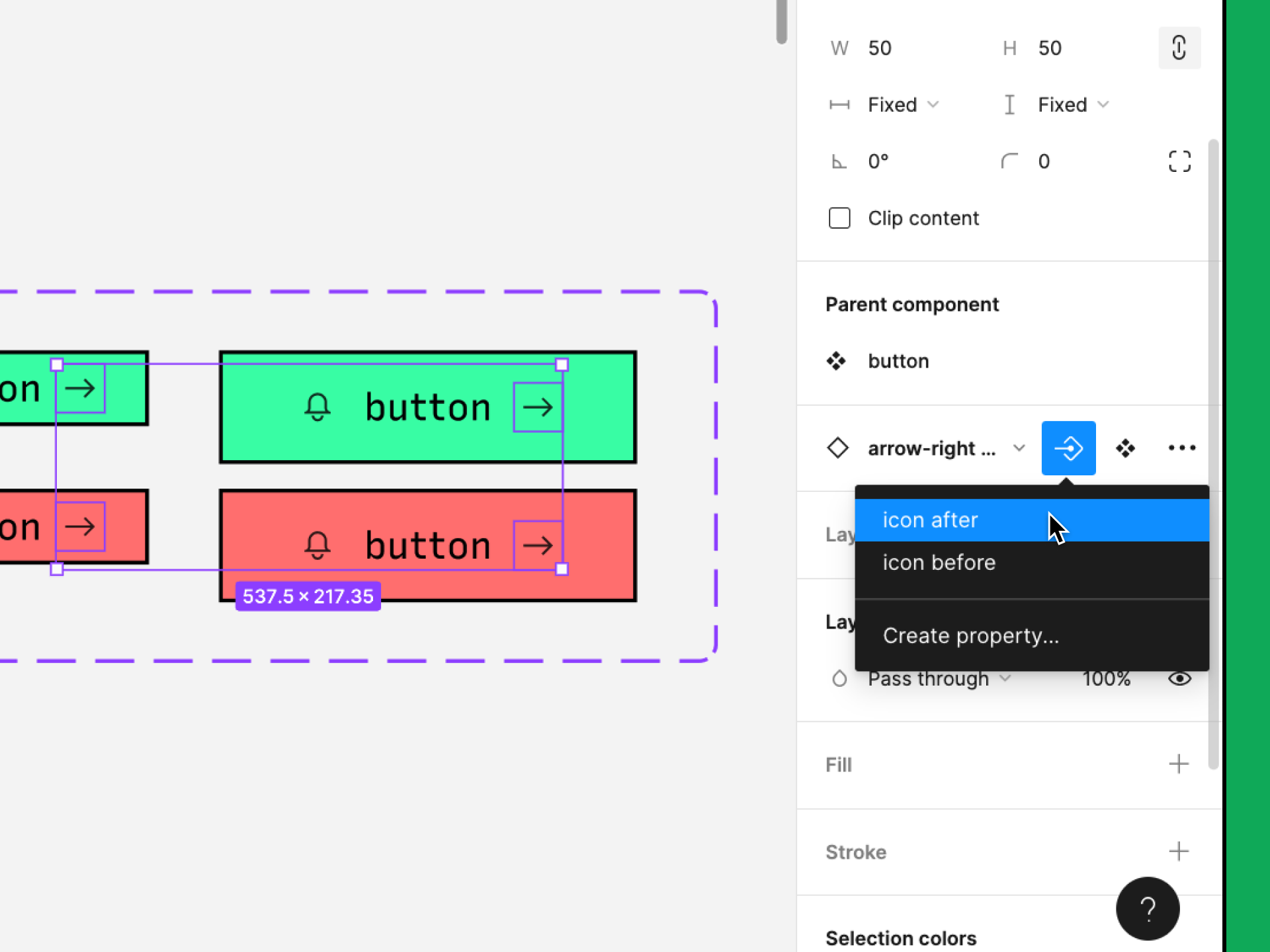 단, 자식 레이어에서는 변형(Variants) 속성을 생성할 수 없다.