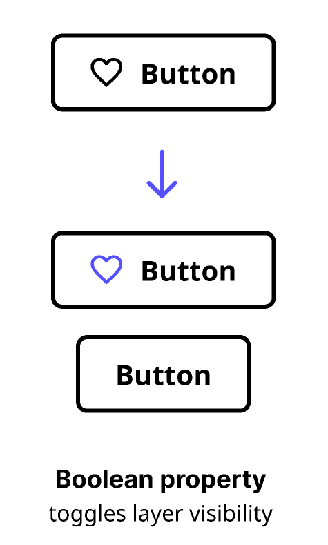 레이어에서 텍스트, 인스턴스 전환, 불리언 프로퍼티를 떼어낼 수 있다.