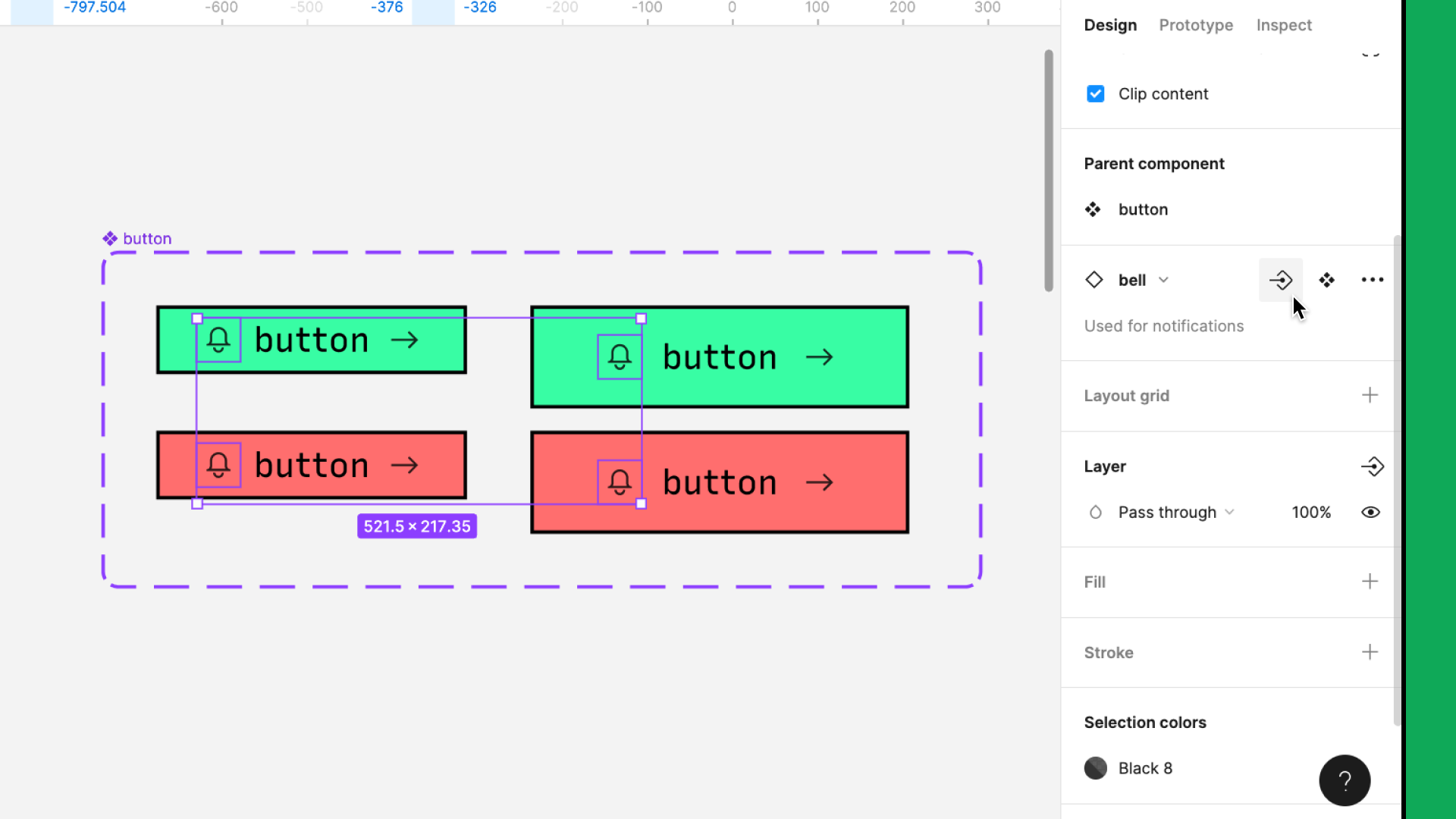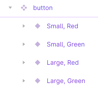 위 예시처럼, 4개의 변형이 있는 버튼 컴포넌트 세트 하나를 만들었다.