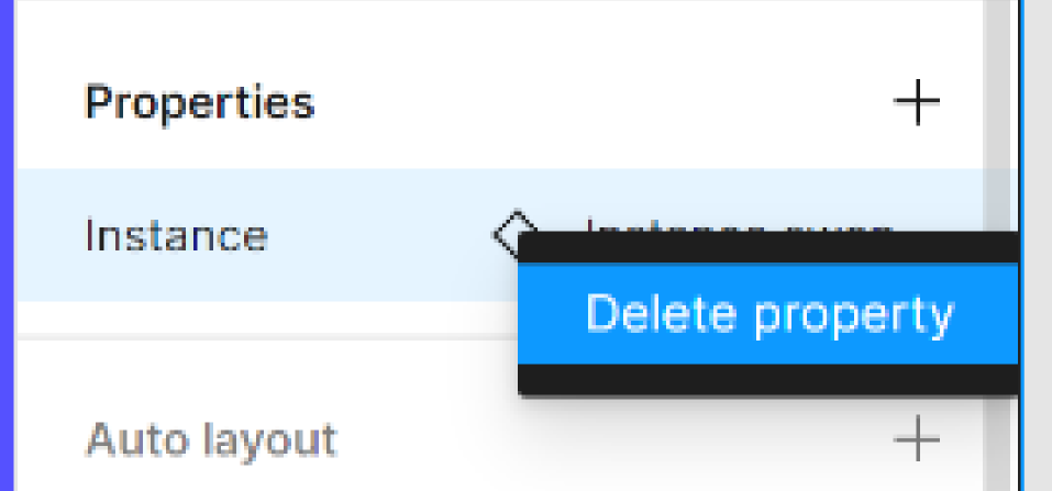 중요 : 만약 당신의 컴포넌트 세트 또는 메인 컴포넌트가 오직 하나의 variant 속성을 갖고 있으면, 프로퍼티 삭제는 전체 컴포넌트 세트 또는 메인 컴포넌트를 삭제할 것이다.