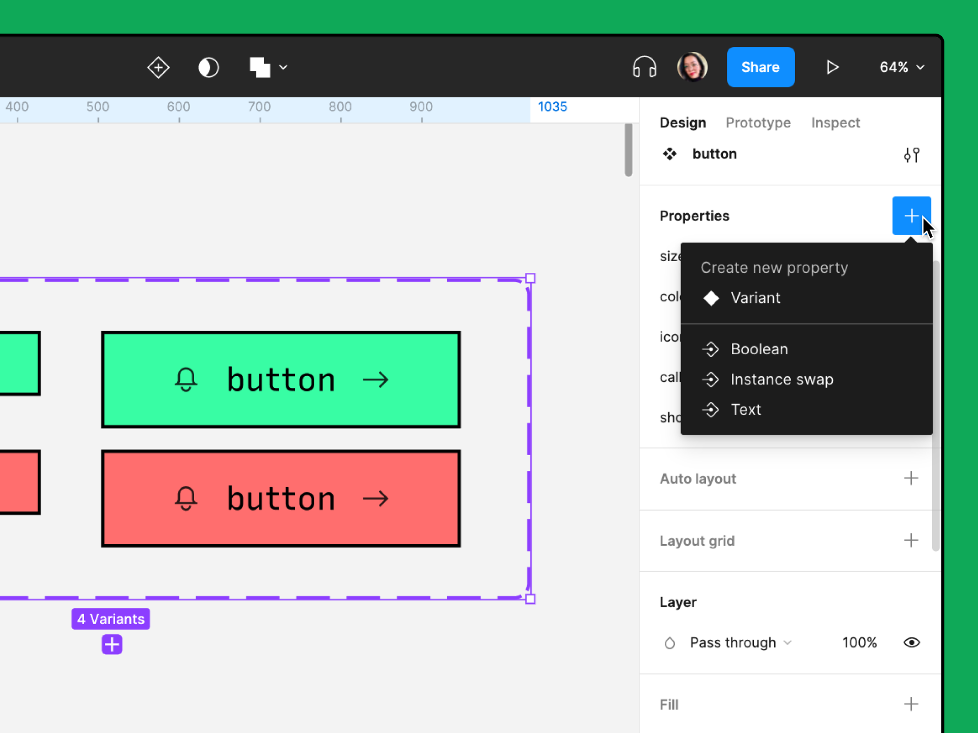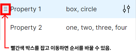 주의 : 변형(variant)속성은 항상 오른쪽 사이드바에 다른 프로퍼티 타입 위에 위치할 것이다.