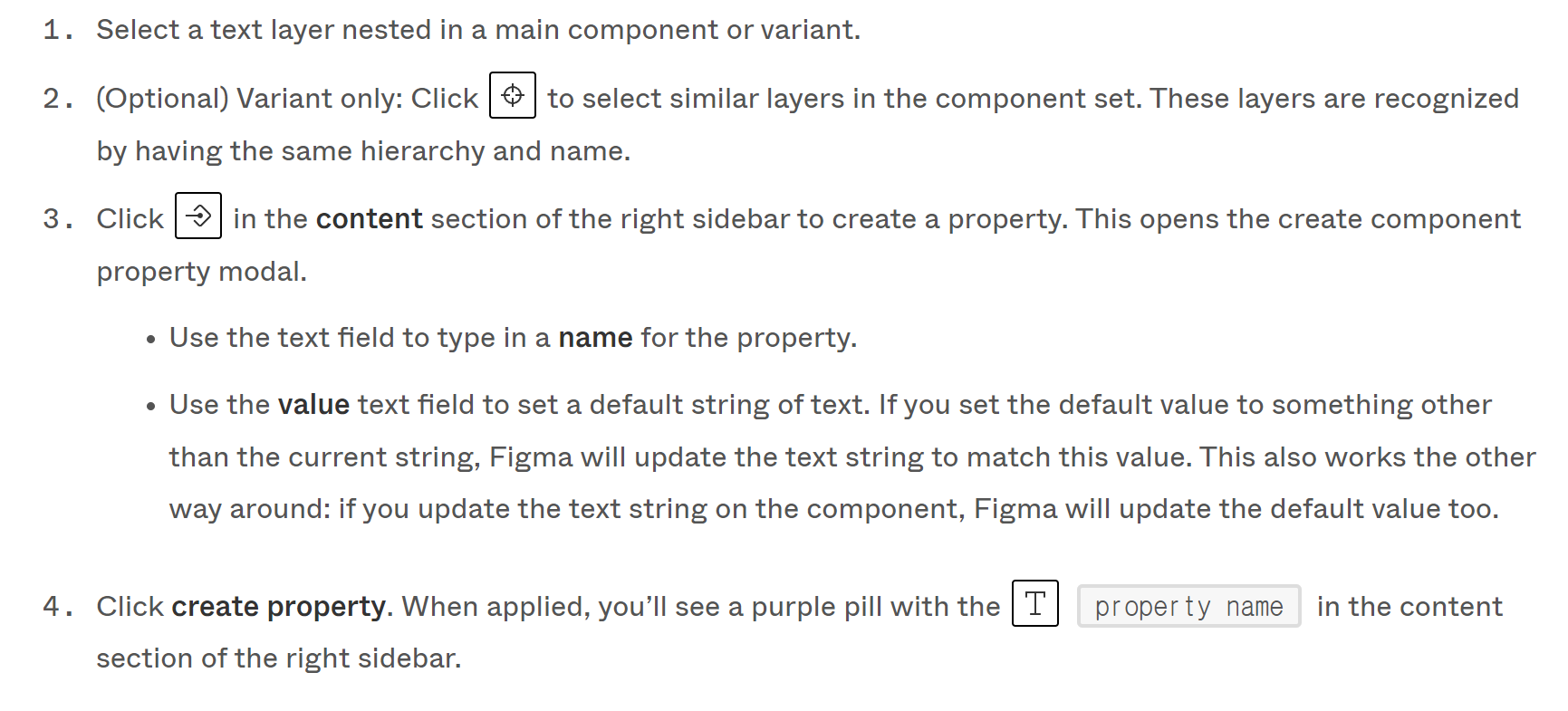 메인 컴포넌트 또는 변형의 자식 레이어로부터 컴포넌트 속성을 생성한다.
