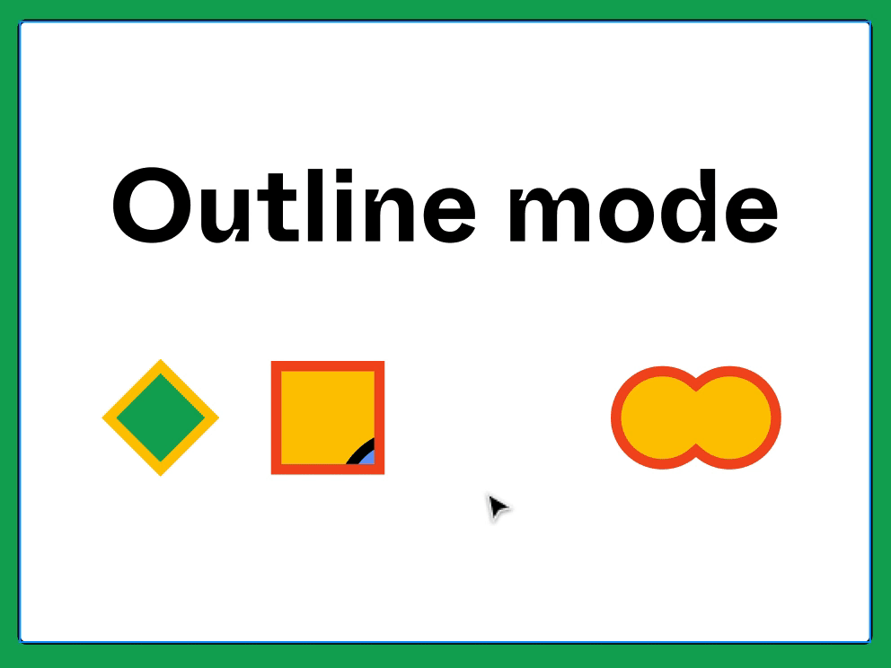 윤곽선 보기 모드를 통해 숨겨진 레이어, 중첩 레이어 등을 보다 쉽게 검사, 선택, 조정이 가능하다.