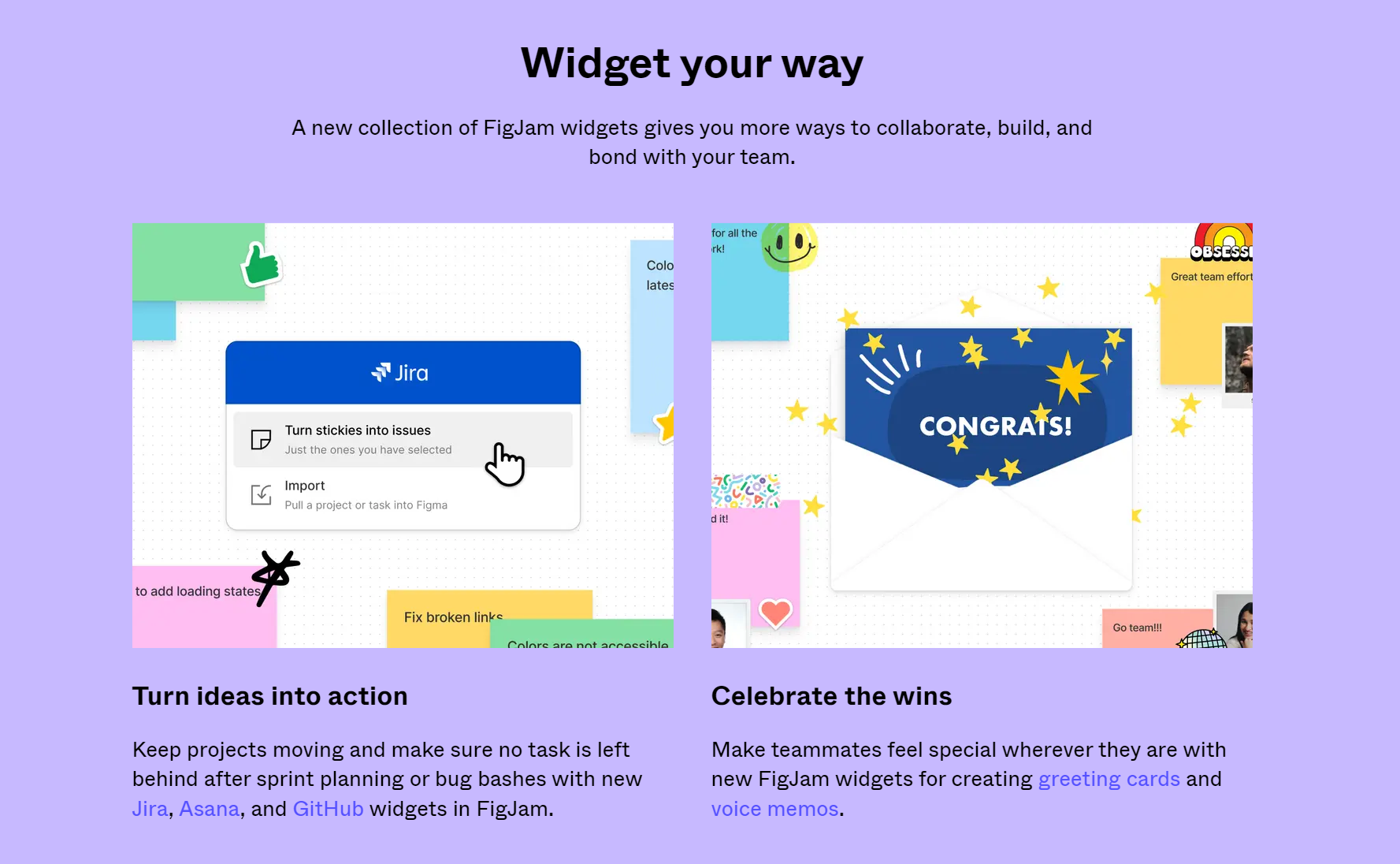 피그잼에 Jira, Asana, Github 위젯을 추가할 수 있다. 이를 통해 프로젝트를 계속 관리하도록 할 수 있다.