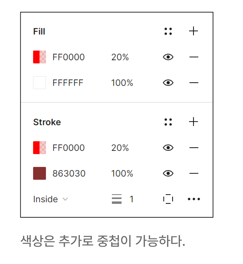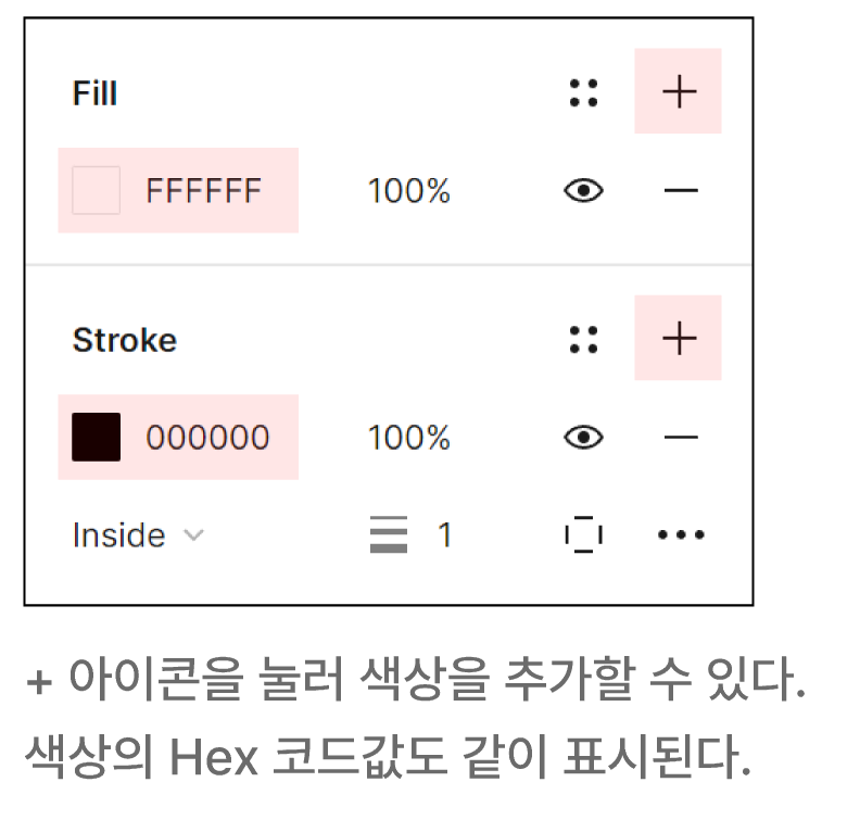 피그마에서 색상을 설정하는 영역은 크게 채우기(Fill) 와 선(Stroke)로 나뉜다.