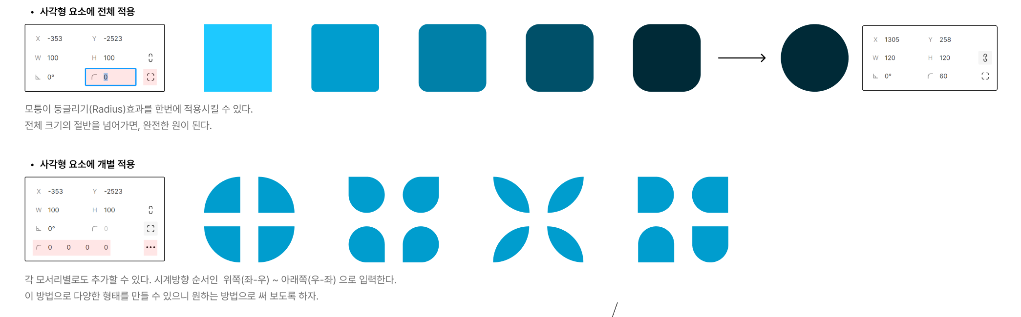 각 모서리별로도 추가할 수 있다. 시계방향 순서인 위쪽(좌-우) ~ 아래쪽(우-좌) 으로 입력한다.