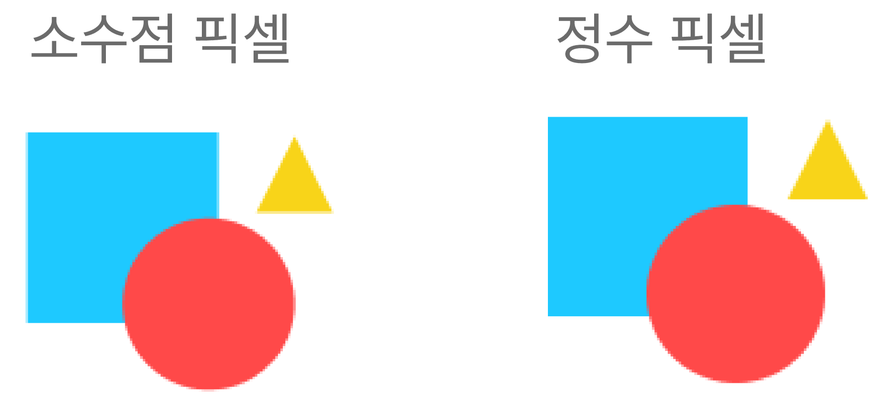 X좌표와 Y좌표의 값이 소수점 픽셀이거나, 폭과 높이가 소수점일때, 내보내기(Export)시 이미지 품질이 저하됨.