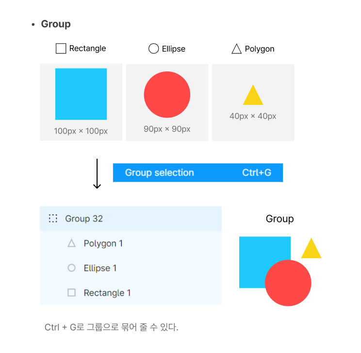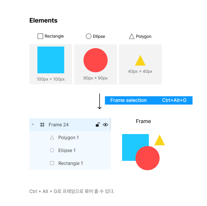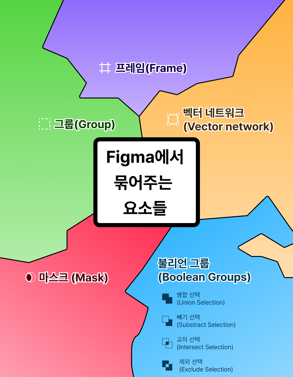 피그마에는 하위 요소를 묶어주는 요소가 대표적으로 5가지 있습니다.