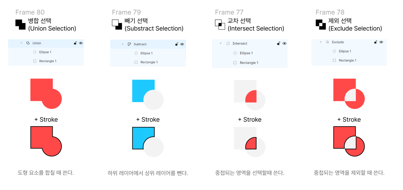 일러스트레이터의 패스파인더(pathfinder)와 같은 기능이지만, 그보다 세세하게 자르거나 나누기는 어렵다.