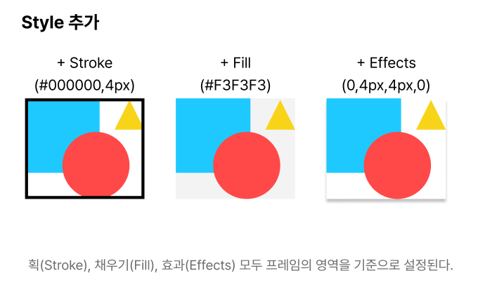 획(Stroke), 채우기(Fill), 효과(Effects) 모두 프레임의 영역을 기준으로 설정된다.