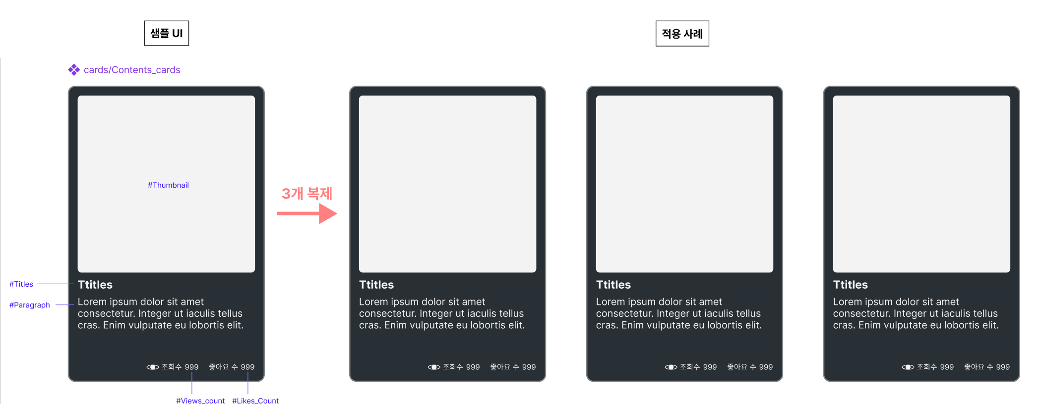 먼저 콘텐츠를 넣을 UI디자인을 제작한 후, 마스터 컴포넌트로 만듭니다.