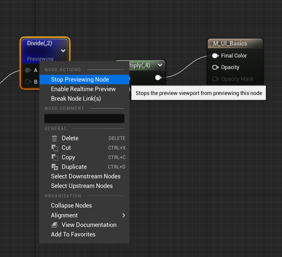 다시 노드에서 오른쪽 버튼을 누르면 노드 미리보기 멈추기 (Stop previewing node) 로 중지할 수 있습니다.