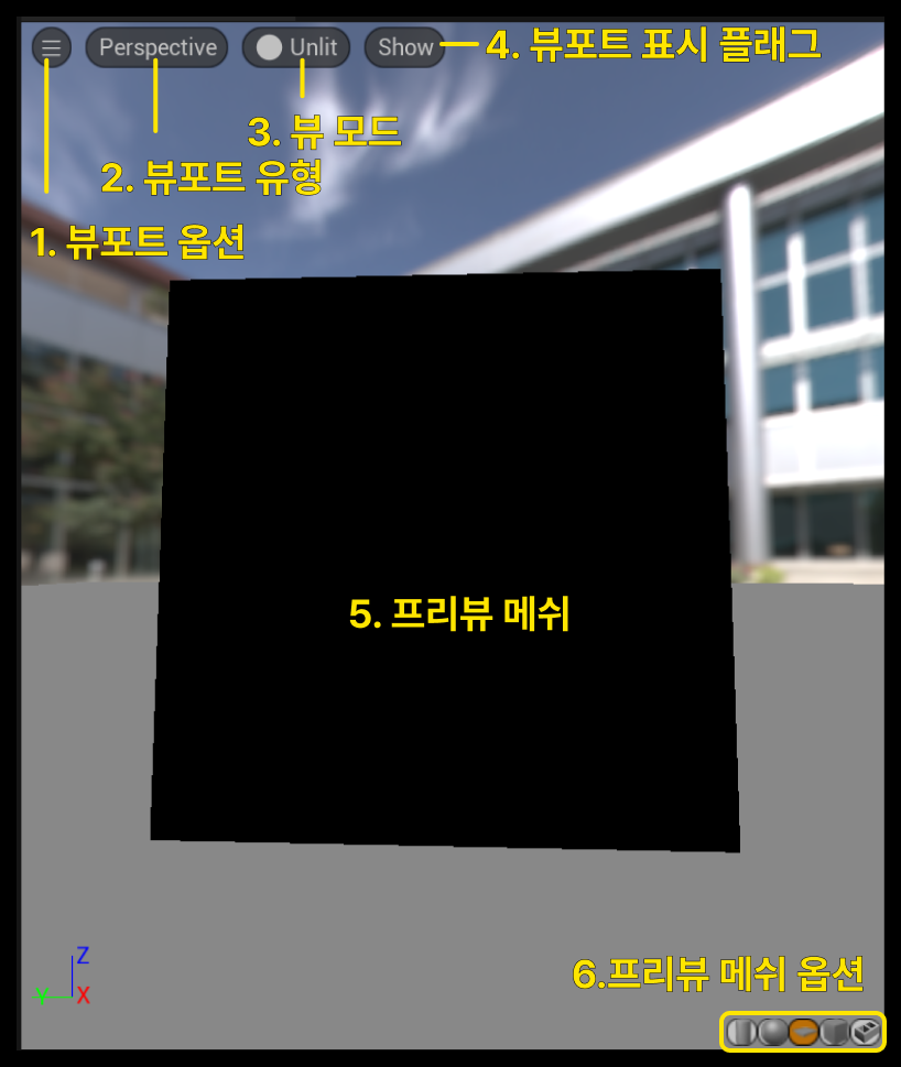 * 자세한 설명은 머티리얼 세팅과 프리뷰 세팅 파트를 따로 다루어 보도록 하겠습니다.