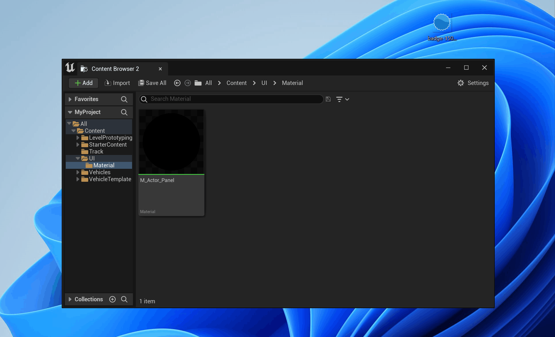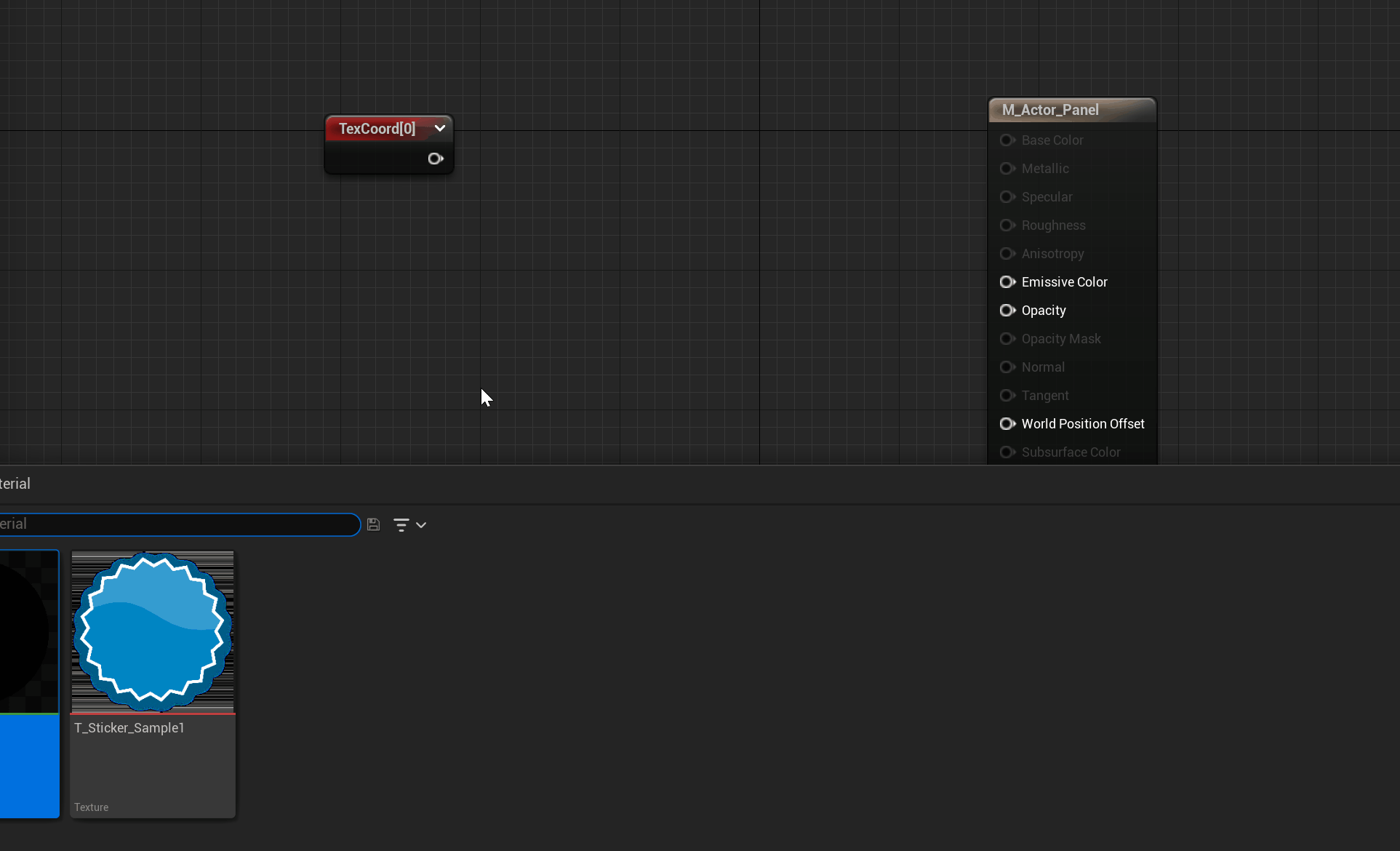 마우스 오른쪽 버튼 → 머티리얼 생성 → 이름 붙이기( M_Actor_Panel ) 후 더블 클릭으로