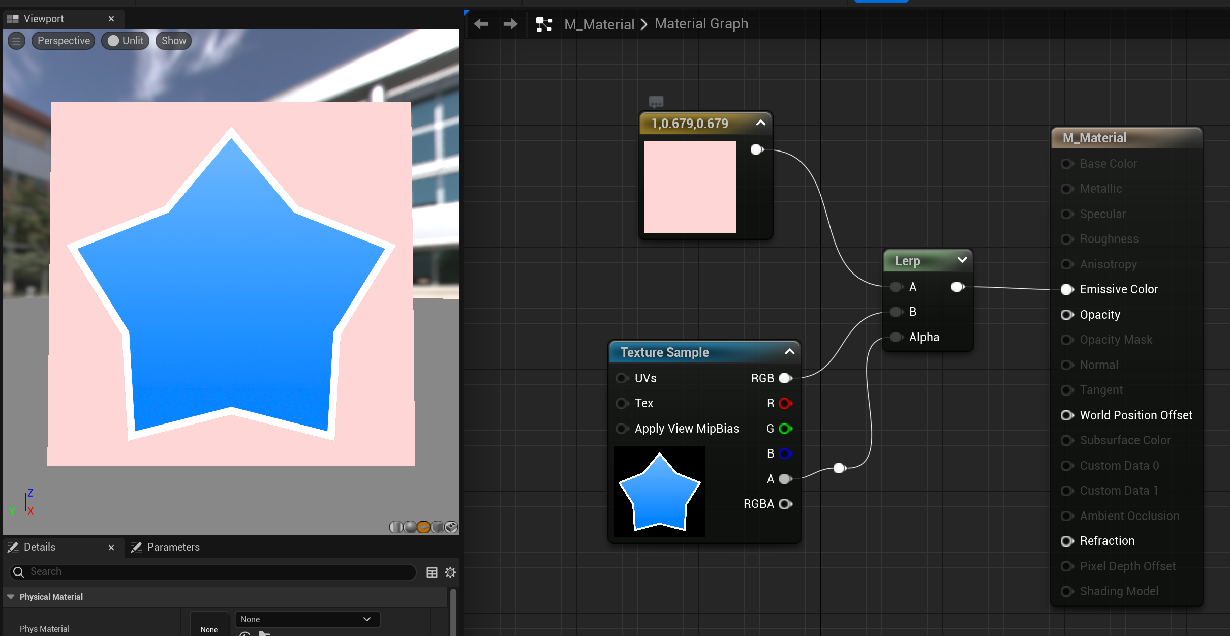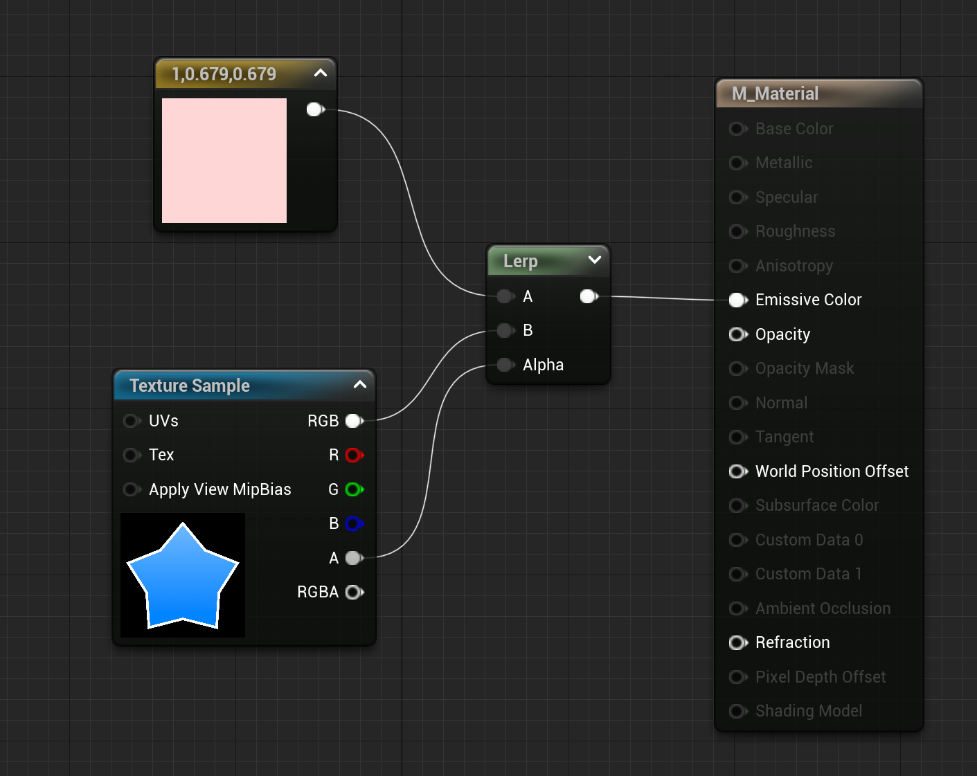 Linear Interpolate 표현식의 Alpha 값은 그대로 T_Star의 알파 채널의 형태를 그대로 띄고 있으므로,