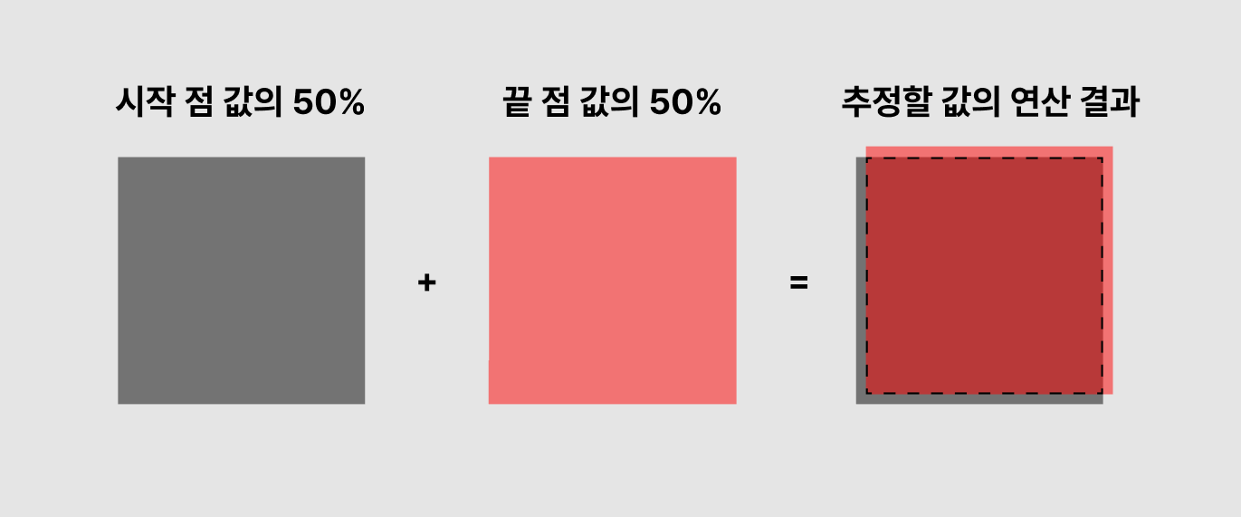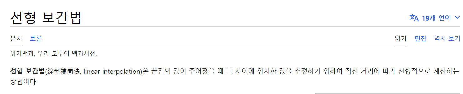 끝 점의 값이 주어졌을 때, 사이에 위치한 값을 추정하기 위해 직선 거리로 선형적으로 계산하는 방법이다