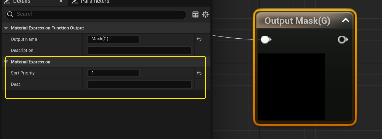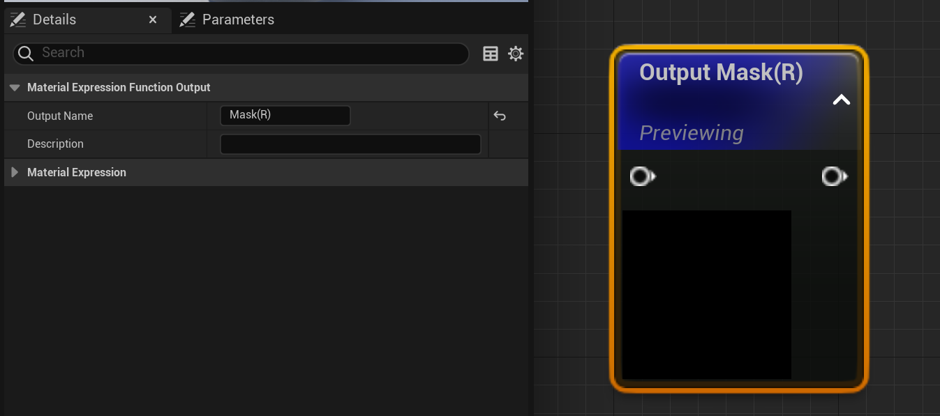 머티리얼 함수는 어떤 값을 받고 내보낼지 정할 수 있습니다.