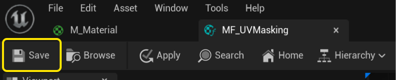 머티리얼로 다시 돌아와서, 머티리얼 함수 MF_UVMasking을 드래그 앤 드롭 해줍니다