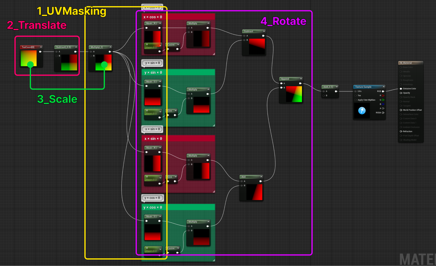 3. 배율(Scale) 4. 회전(Rotate)를 머티리얼 함수로 만들 수 있을 것 같아요.