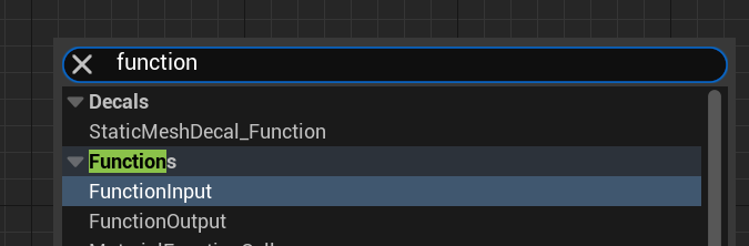 마우스 오른쪽 버튼을 누르고 function이라 검색하면 FunctionInput과 FunctionOutput을 찾을 수 있습니다.