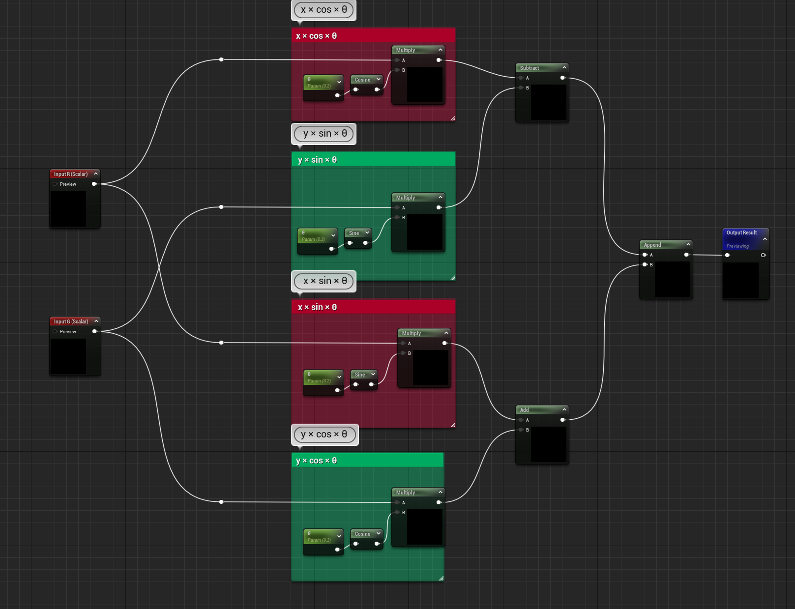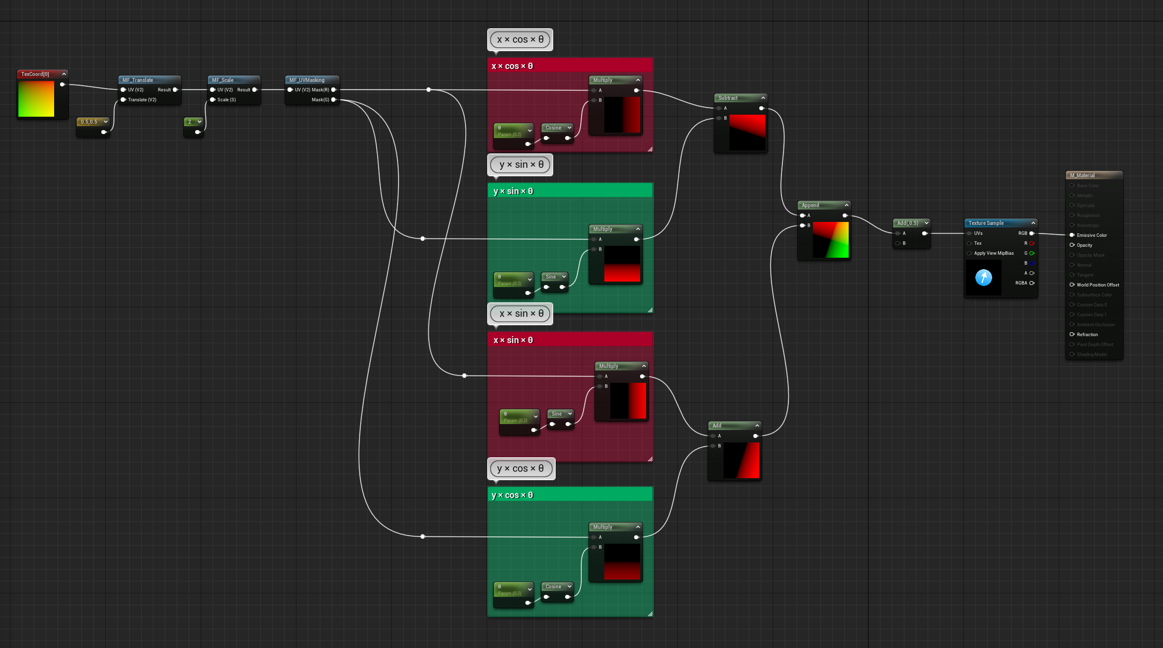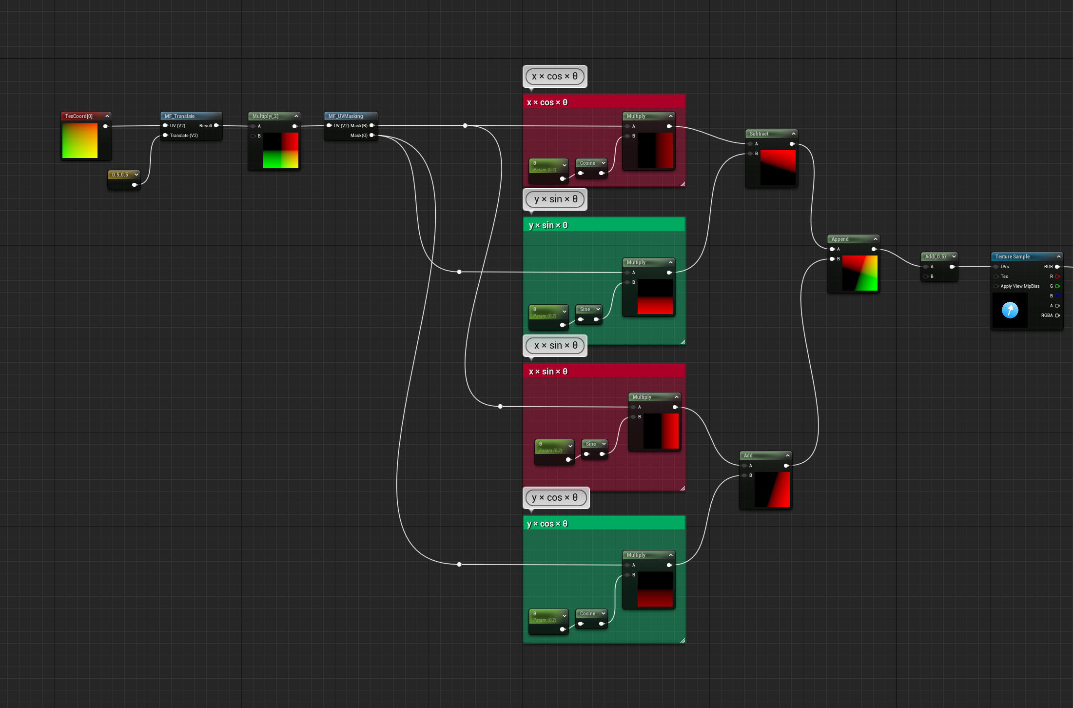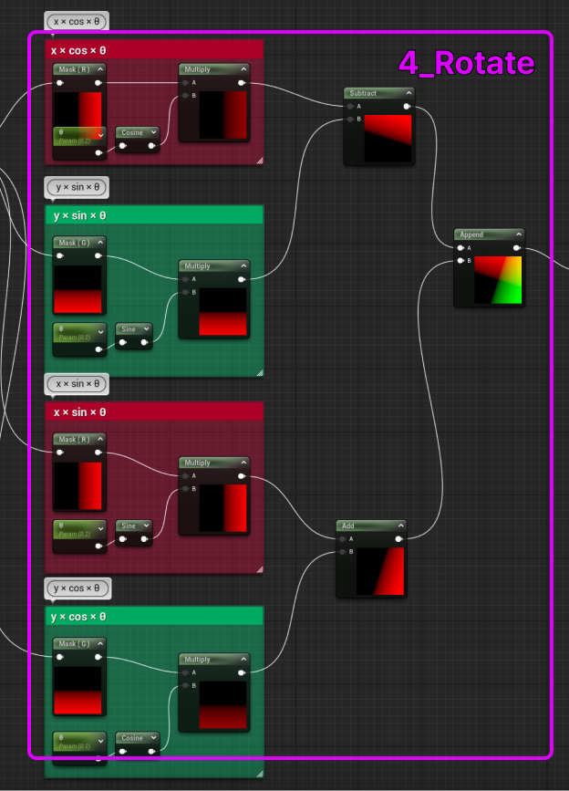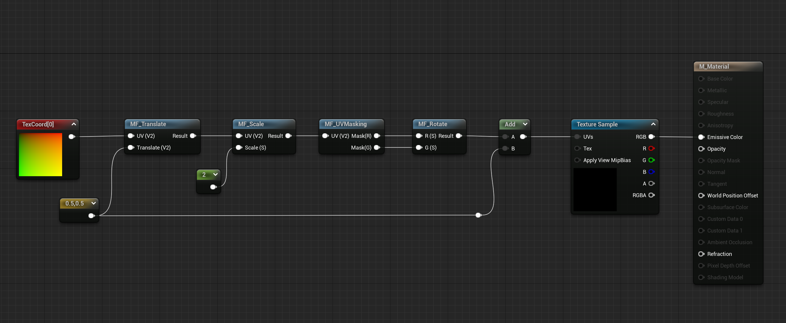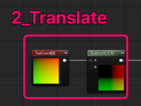이동 기능은 UV(Vector2)좌표에서 빼기(Subtract) 연산으로 좌표 위치를 설정합니다.
