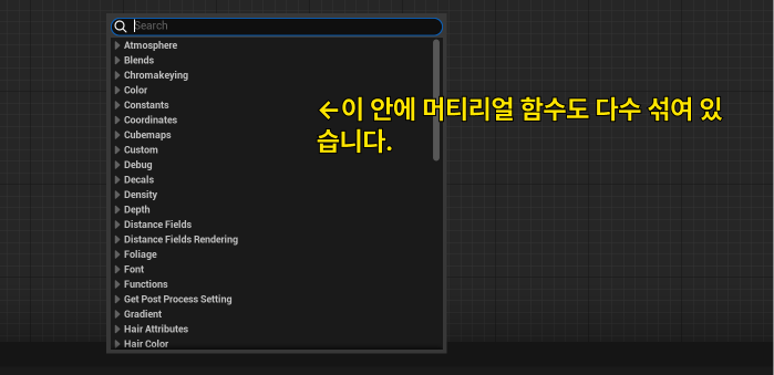 이미 제작된 머티리얼 함수에는 어떤 것들이 있을까? 하고요.