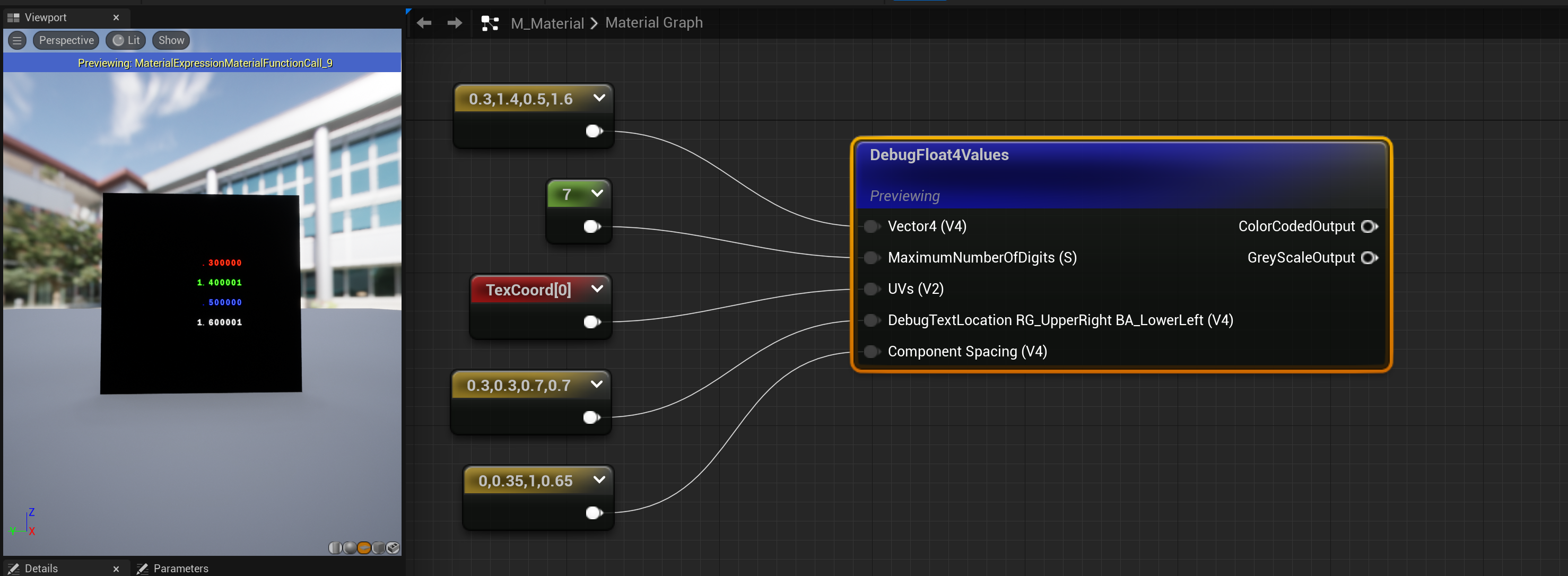 그래서 노드의 출력 값을 조회하는 방법, DebugValue 함수를 가져와봤습니다.