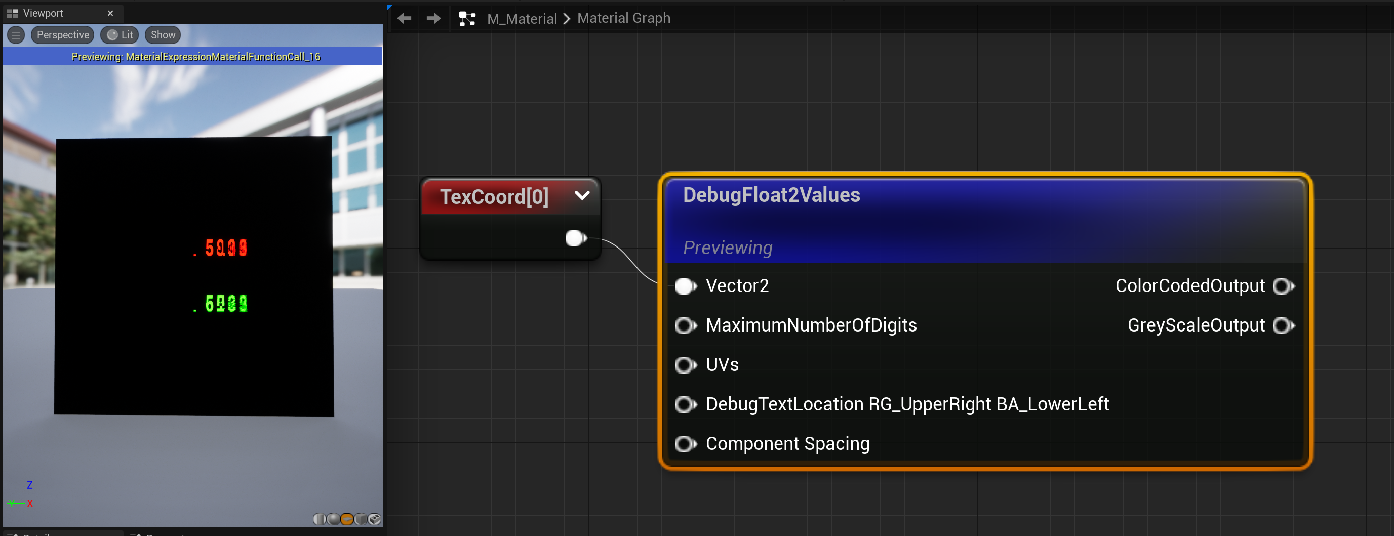 Float2 자료형 조회에 사용되는 머티리얼 함수입니다.