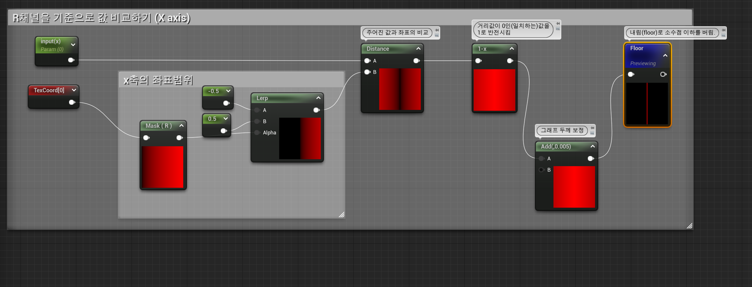 이렇듯, 그라디언트 영역으로 그래프의 위치를 그린 후(UV),