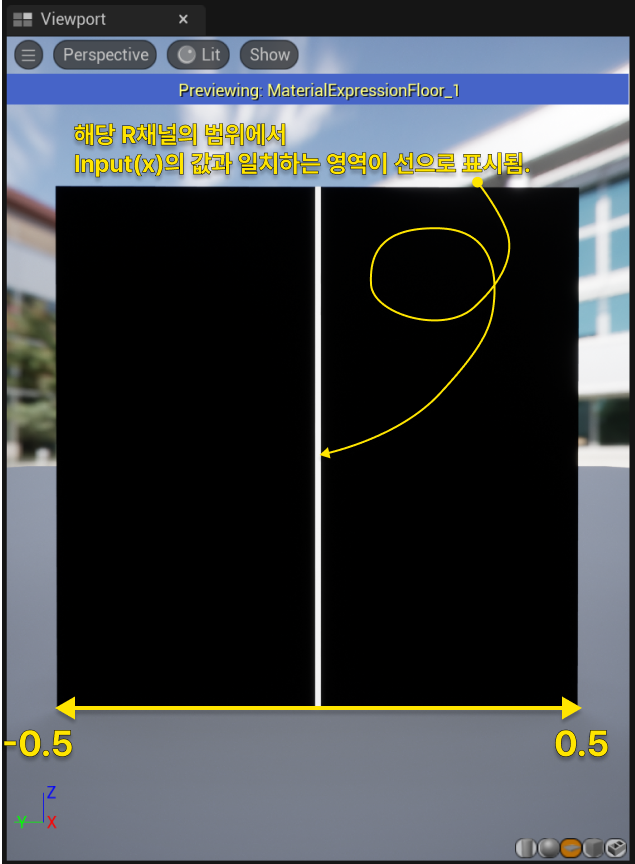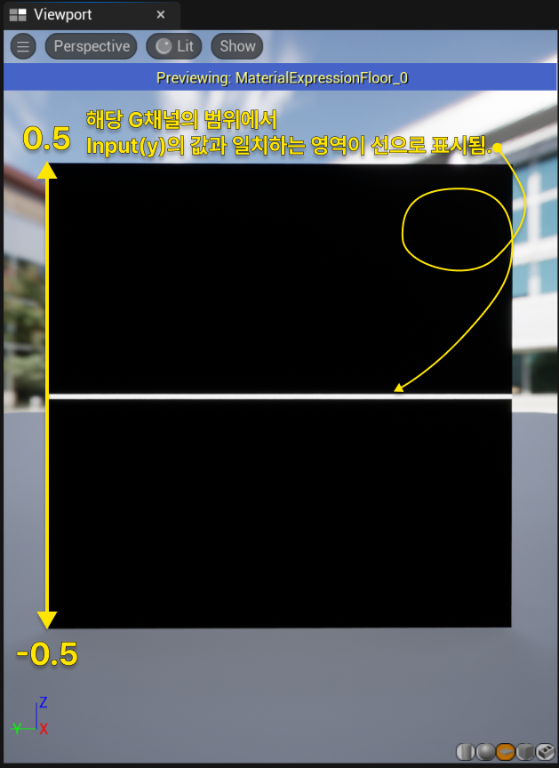 만약 TexCoordinate 노드에서 G채널을 기준으로 1을 비교하게 되면, 출력이 어떻게 될까요?