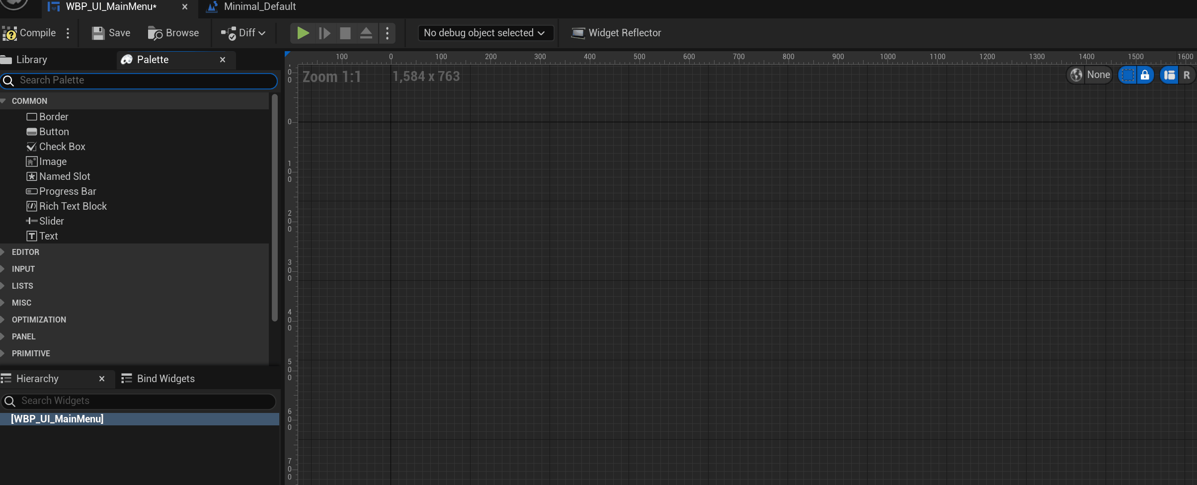 이름을 WBP_MainMenu로 설정하고 더블 클릭하여 UMG 창을 실행합시다.