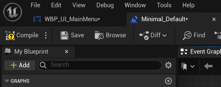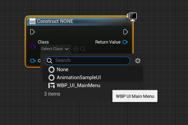 아까 생성했던 위젯 이름인 WBP_UI_MainMenu가 표시되는 걸 볼 수 있습니다.