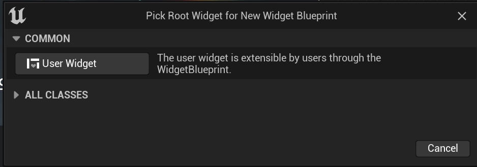 일단은 시작 단계이므로 User Widget으로 설정해 줍시다.