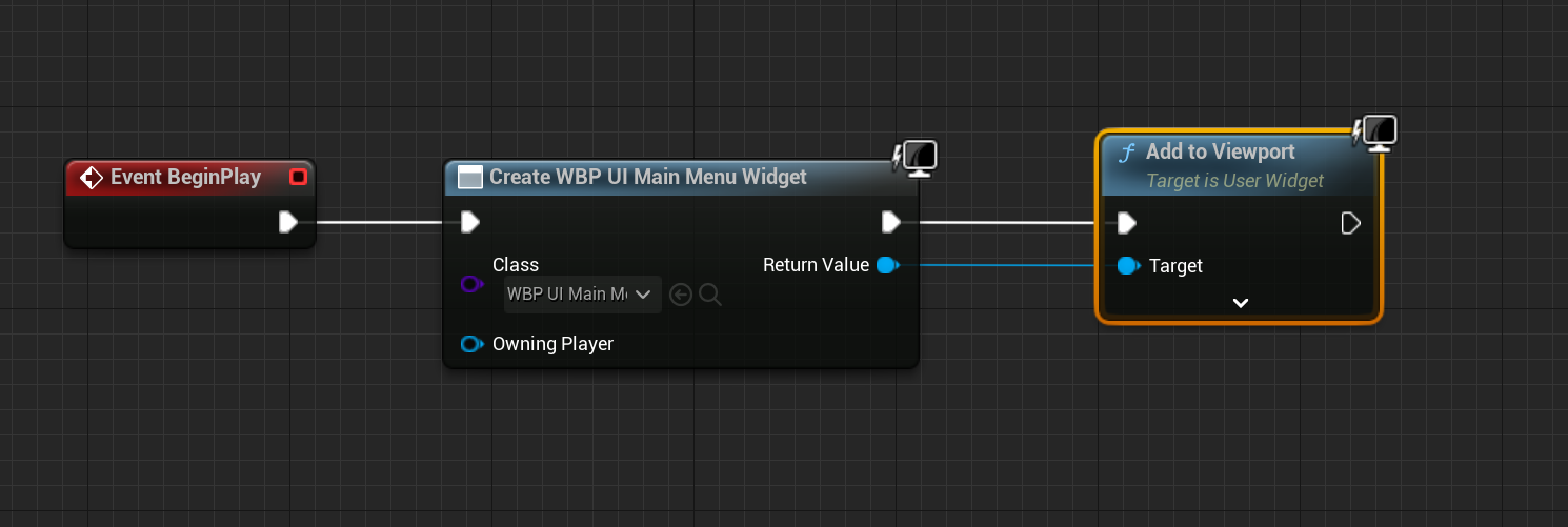 여기서 Add to Viewport를 선택해 주세요. 그러면 생성된 위젯을 화면에 출력하실 수 있습니다.