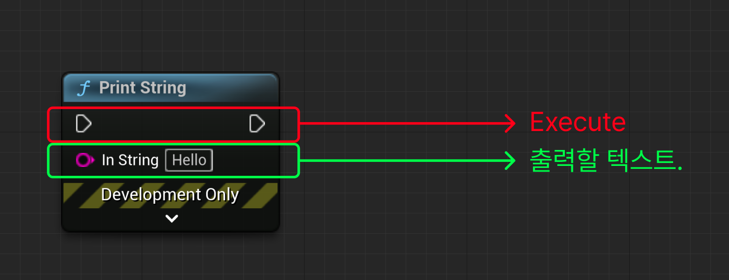 문자열 출력 노드(Print String)은 해당 메시지를 출력해주는 노드입니다.