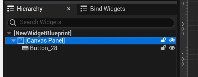 (위 이미지에서는 Canvas Panel의 자식, Button_28이 배치된 상태.)