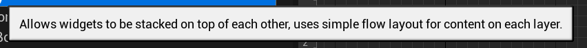 위젯을 쌓을 수 있도록 허용하며, 각 레이어의 콘텐츠를 위해 간단한 흐름 레이아웃을 사용합니다.