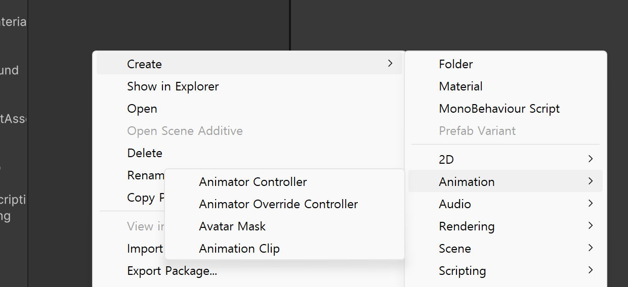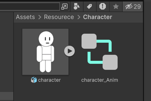 Create - Animation - animator controller를 생성하고 이름을 chracter_Anim으로 바꾼다.