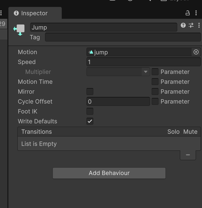 (예 : Jump - Jump(animation clip)